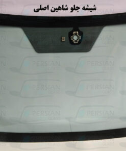 شیشه جلو شاهین سایپا دور مشکی و تمام رنگ است و از لحاظ جنس ، از نوع شیشه لمینت می باشد. این شیشه دارای آپشن سنسور نور نیز می باشد. توجه داشته باشید که سنسور باران در شاهین حذف شده و فقط سنسور نور کار می کند. شیشه جلو این خودرو توسط شرکت های مختلفی تولید می شود ولی برند اصلی ، شرکت سایپا شیشه و شرکت شیشه ونوس می باشد. روی شیشه جلو بصورت فابریک پایه سربی آینه وسط و همچنین پایه سنسور نور قرار دارد و نیازی به انتقال آن ها وجود ندارد. تصویر زیر نمونه ای از این شیشه را به نمایش گذاشته است.